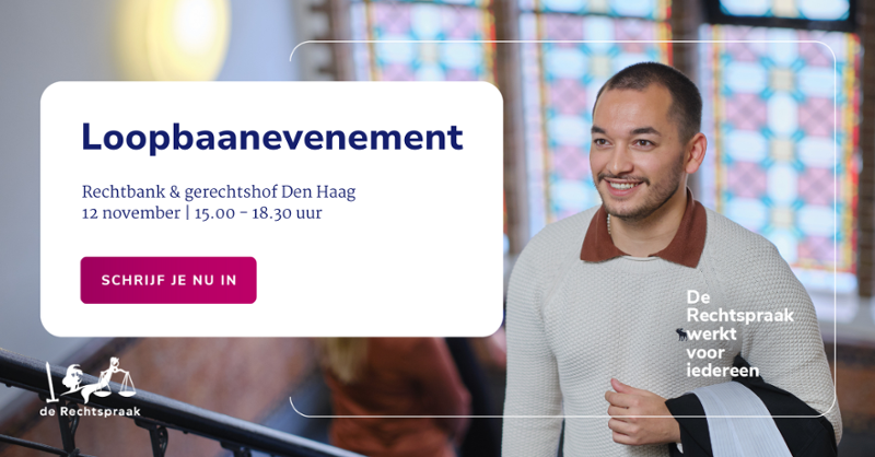 Den Haag, 11-09-2025Ben jij rechtenstudent of net afgestudeerd en ben je je aan het oriënteren op je carrièremogelijkheden? Wil je graag weten wat de Rechtspraak je kan bieden? Op woensdagmiddag 12 november organiseren de rechtbank en het gerechtshof Den Haag een loopbaanevenement voor rechtenstudenten in het Haagse Paleis van Justitie. Ben jij erbij? …
