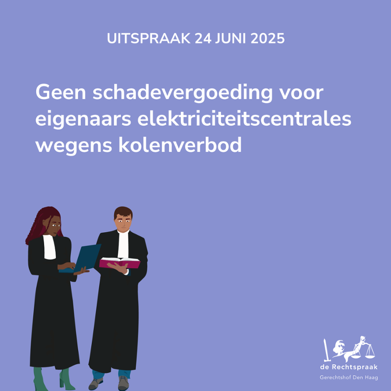 In 2019 is een wet in werking getreden die het gebruik van kolen in elektriciteitscentrales verbiedt. RWE en Uniper eisen dat de Staat de schade vergoedt wegens de negatieve gevolgen daarvan. Het gerechtshof Den Haag heeft vandaag geoordeeld dat de Staat daartoe niet verplicht is.