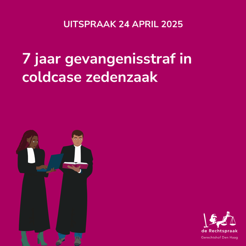 Het gerechtshof in Den Haag heeft vandaag in een cold casezaak uit 2010 een man veroordeeld voor twee verkrachtingen en een poging tot aanranding. Het gaat om een verkrachting van een meisje van vijftien jaar in Schiedam, een verkrachting van een meisje van dertien jaar in Vlaardingen en een poging tot aanranding van een meisje van vijftien jaar in Vlaardingen. Het Haagse hof heeft hem veroordeeld tot een onvoorwaardelijke gevangenisstraf van zeven jaar. Dit is overeenkomstig de eis van het Openbaar Ministerie.