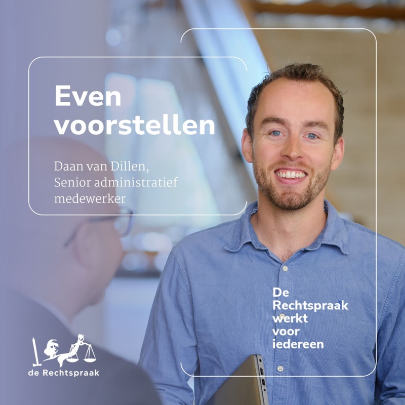 In nieuwsprogramma’s op tv zie je geregeld een persoon in toga uitspraak doen in een rechtszaak. Wat is er allemaal voor nodig om tot een uitspraak te komen? Wie werken er aan mee om dit mogelijk te maken? In deze rubriek vertelt telkens een andere professional over zijn of haar werk bij ons hof. Zo geven we een inkijk achter de schermen. In dit interview neemt Daan van Dillen, senior administratief medewerker bij de familiegriffie, ons mee in zijn werkzaamheden.