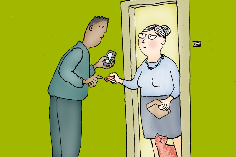 Rotterdam, 12-01-2022Brian (24)* parkeert zijn huurauto voor de Rotterdamse flat en belt aan bij een 91-jarige mevrouw. Hij komt een pakketje brengen. De mevrouw verwacht post, dus achterdochtig is ze niet. Of ze wel even 1 euro voor de bezorging wil betalen – met haar pinpas. Brian haalt een mobiel pinapparaatje tevoorschijn. In werkelijkheid is het gewoon zijn smartphone. Als de mevrouw nu haar pinpas geeft en de code intikt, dan is dat eurootje zo overgemaakt.