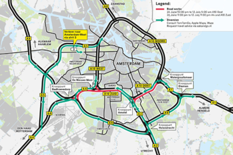 Amsterdam, 24-06-2025Deze zomer zijn er veel wegwerkzaamheden en wegafsluitingen in Amsterdam. Dit is ook het geval rondom de Zuidas, waardoor de rechtbank tijdelijk slechter bereikbaar is. Hou dus rekening met extra reistijd als je naar de rechtbank gaat met de auto of de trein.