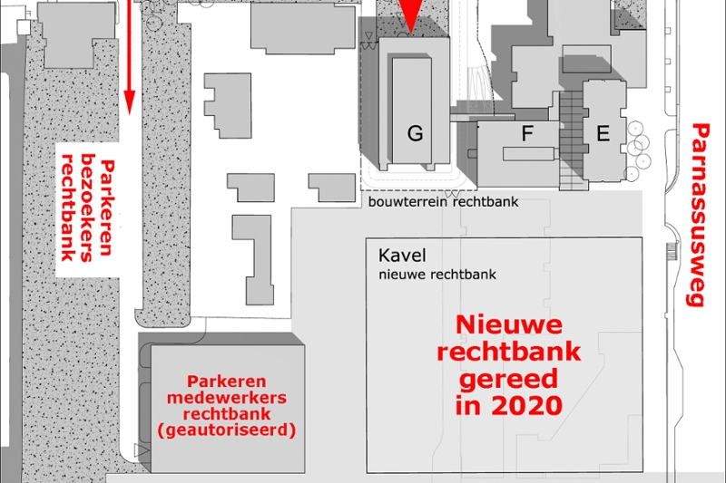 Amsterdam, 15-12-2016Vanaf maandag 19 december kunt u voor uw bezoek aan de rechtbank Amsterdam niet langer gebruik maken van het parkeerterrein aan de zuidkant van het gerechtsgebouw bij de A10, bij de uitgang van Station Zuid. Het huidige parkeerterrein wordt met het oog op de nieuw te bouwen rechtbank gesloten.